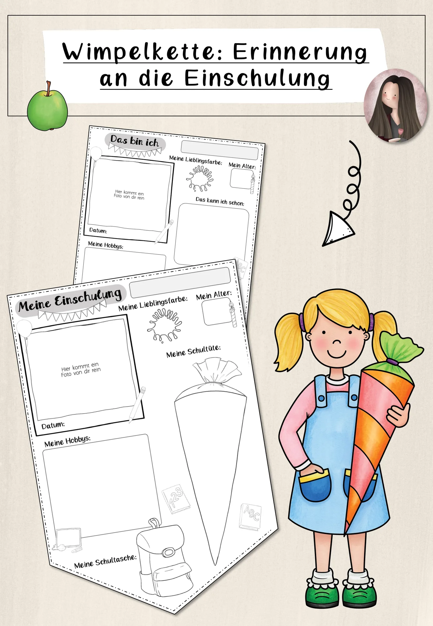 Mit diesem Wimpel können die Kinder ihre Erinnerung an die Einschulung festhalten und einen eigenen Wimpel gestalten.