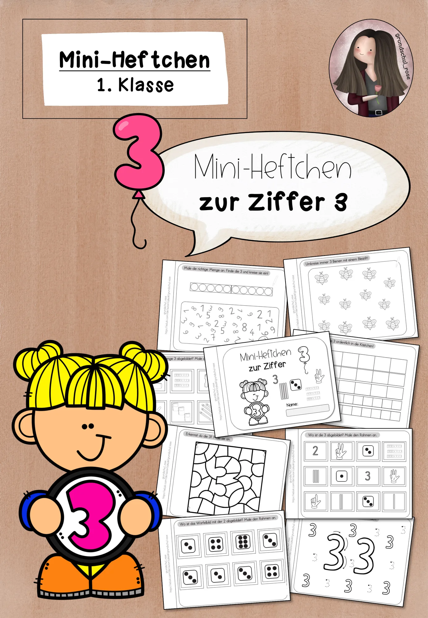 Mini-Heftchen zur Ziffer/Zahl 3 (1. Klasse)